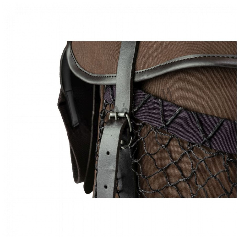 A Jack Pyke Canvas Game Bag strapabíró pamutvászonból készült, és a műbőr szegélyekkel és pántokkal kiegészítve a táskát úgy tervezték, hogy ne csak jól nézzen ki, hanem praktikus is legyen. Belsejében mosható bélés található a könnyű tisztítás érdekében, valamint egy elülső nylon hálós zseb a nagyobb kapacitás érdekében. A vállpánt hossza a mellékelt fém csatok segítségével állítható.