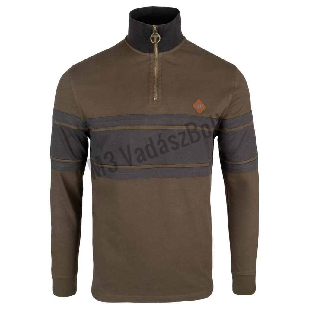 A Half Zip Contrast pulóver a kényelmes viseletet elegáns, vidéki hangulatú megjelenéssel ötvözi. A magas, álló gallér fémgyűrűs cipzárral, a mellkason és ujjakon futó kontrasztos panelek, valamint a diszkrét JP mellkasi embléma prémium megjelenést kölcsönöznek.