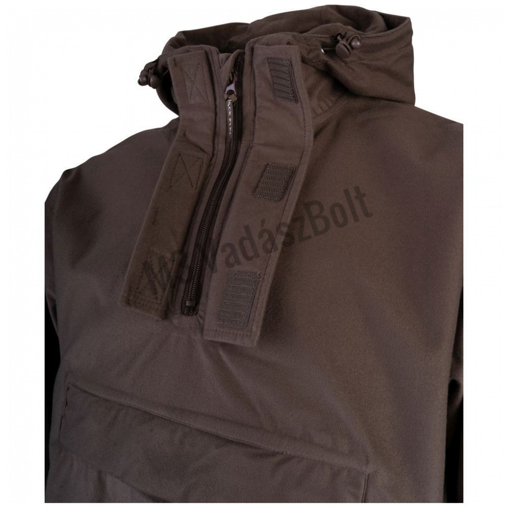 A Jack Pyke Galbraith anorák 100% poliészter trikó anyagból készül laminált membránnal, állítható kapucnival, állítható mandzsettapánttal és húzózsinóros, állítható derékrésszel. A szálcsiszolt trikóanyag használata egy könnyen összehajtható és könnyű ruhadarabot eredményez, amely rengeteg helyet takarít meg a hátizsákban. A nagy elülső zseb és a két ferde alsó zseb vízálló cipzárakkal rengeteg helyet biztosít.