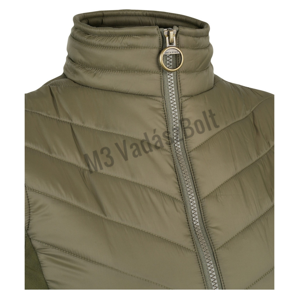 A Jack Pyke Ladies Shires mellény könnyű, karcsúsított fazonú darab, amely kényelmet és szabad mozgást biztosít a terepen. Az előnyös chevron steppelés, a rugalmas oldalpanelek és a magas, párnázott gallér melegen tart anélkül, hogy felesleges tömeget adna, így könnyedén rétegezhető aláöltözettel vagy kötött felsővel. A teljes hosszúságú, kétirányú cipzár, a két cipzáras alsó zseb és a diszkrét JP logó stílusos és praktikus választássá teszi vidéki és mindennapi viselethez egyaránt