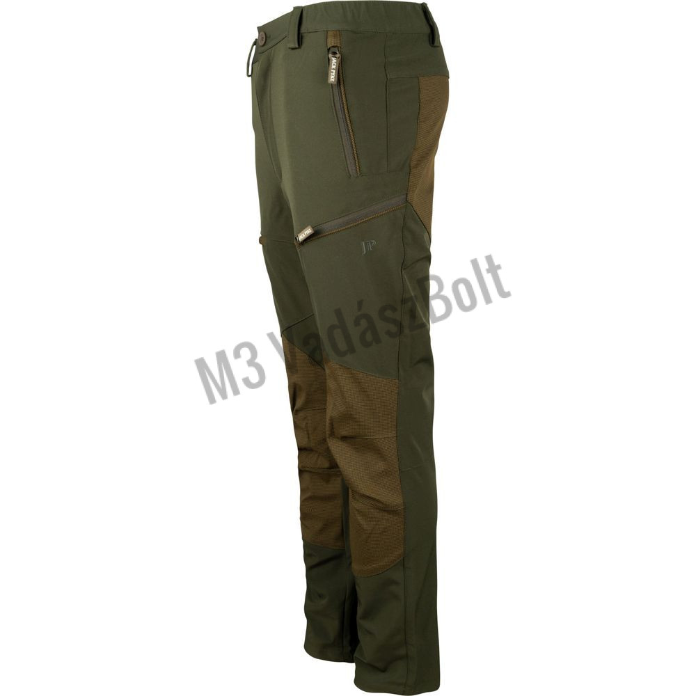 Két felső és két alsó cipzáras elülső zsebbel, egy hátsó cipzáras zsebbel és biztonságos, gombos derékrésszel rendelkezik, így ez a nadrág elegendő tárolási lehetőséget és kényelmes viseletet biztosít.
