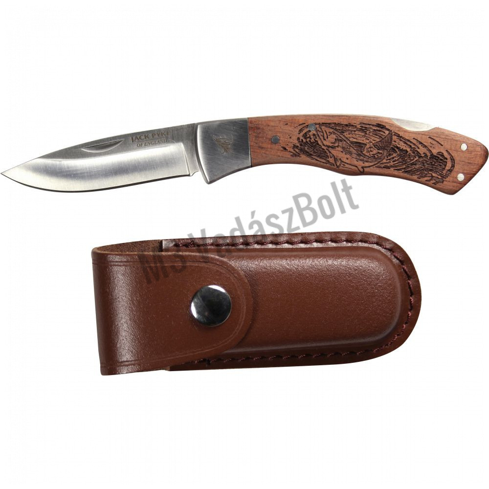 A Jack Pyke Shires Deer kés rozsdamentes acél pengéjű késeket tartalmaz rózsafa nyéllel, amelyek lézerrel maratott vidéki jeleneteket tartalmaznak a megerősítésnél, a FISH változat halat. Minden késhez egy patentos barna bőrhüvely tartozik.