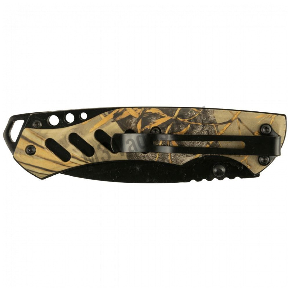 A Jack Pyke 3 inches Sporter kése egy nagyszerű, univerzális kés zárható retesszel, fekete bevonatú, rozsdamentes acél pengével, a markolaton terepszínű kialakítással. A kés erős, fekete kordura tokkal rendelkezik, hogy Te és a késed biztonságban legyetek.