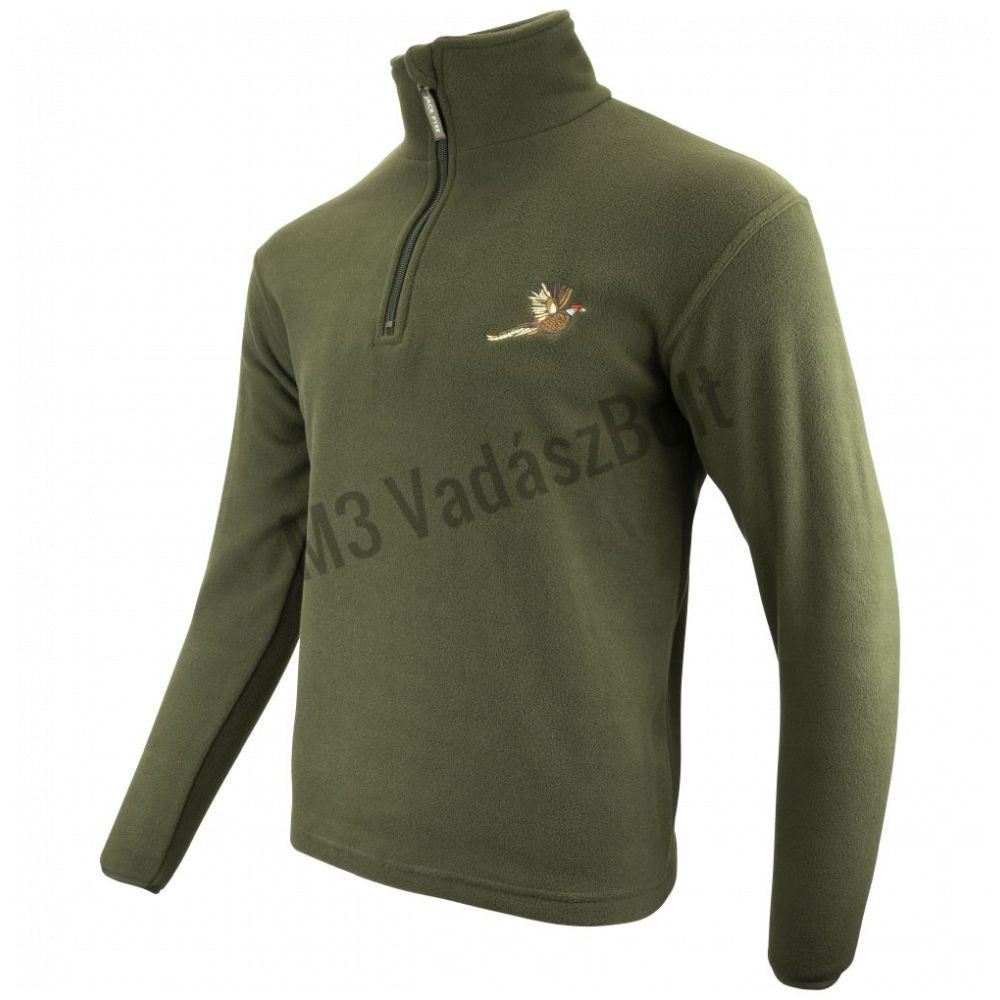 A Jack Pyke fácán motívumú polár felső 250 g-os poliészter gyapjúból készült, így ez a pulóver külső rétegként viselhető a melegebb hónapokban, vagy alaprétegként az őszi és téli időszakokban. A meghosszabbított derékrész és a rugalmas mandzsetták további védelmet nyújtanak az időjárás viszontagságaival szemben. Az előlapon hímzett fácán motívum adja a klasszikus mezei sportok megjelenítését.