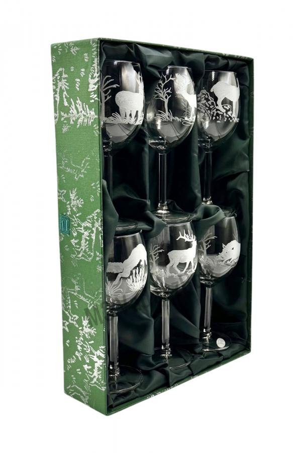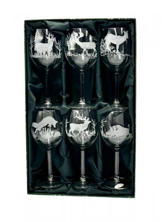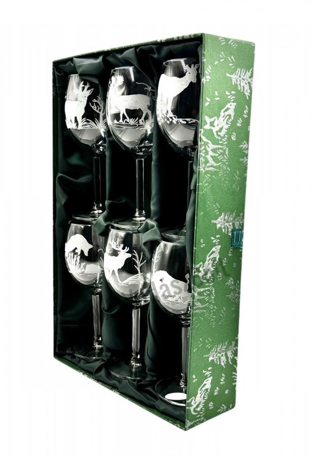 A Jägerglas gravírozott borospohár garnitúra egy elegáns és kifinomult szett, amely különleges élményt nyújt a borfogyasztás szerelmeseinek, különösen a vadászat iránt rajongóknak. A 6 darabból álló készlet magas minőségű üvegből készült borospoharakat tartalmaz, amelyek gravírozott vadászati motívumokkal díszítettek. A részletgazdag minták – például vadászjelenetek, állatok vagy természet ihlette elemek – egyedi és esztétikus megjelenést kölcsönöznek a poharaknak, miközben elegáns és időtálló stílust sugároznak.
