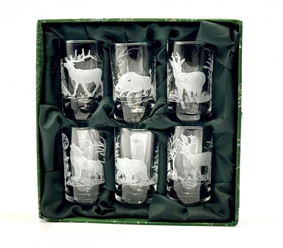 A poharak nagyobb mérete ideális azok számára, akik a klasszikus stampedli méreteknél nagyobb adagokat kedvelnek, legyen szó pálinkáról, likőrről vagy egyéb röviditalokról. Az ergonomikus kialakítás kényelmes fogást biztosít, míg az átlátszó üveg és a precízen gravírozott vadászati minták elegáns és időtálló stílust garantálnak. A készlet különösen ajánlott vadászok számára, akik értékelik a természet és a vadászat iránti szenvedélyük kifejezését egy stílusos és praktikus italkészlet formájában.