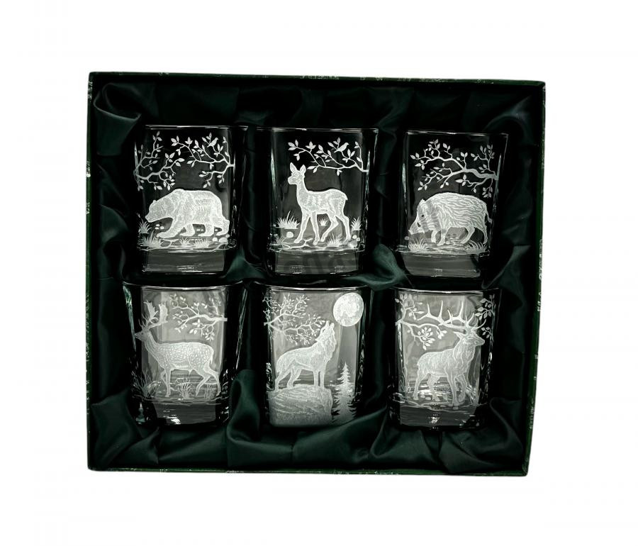 Ez a 6 db-os whiskys pohár garnitúra kiváló választás baráti összejövetelekre, családi eseményekre vagy vadászat utáni ünnepi koccintásokhoz. A gravírozott vadászmotívumok és a készlet egyedi megjelenése miatt kifejezetten ajánljuk vadászok számára, akik értékelik a vadászat és a természet iránti szenvedélyük kifejezését egy ilyen exkluzív készleten keresztül. Ajándékként is tökéletes, legyen szó születésnapról, évfordulóról, karácsonyról vagy bármilyen más különleges alkalomról. A Jägerglas gravírozott whiskys pohár garnitúra nemcsak praktikus, hanem stílusos és dekoratív elemként is megállja a helyét, miközben minden italfogyasztási élményt emlékezetessé tesz, különösen a vadászat szerelmeseinek.