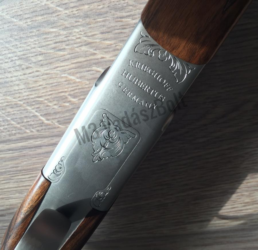A Krieghoff Hubertus egy egylövetű, billenő csövű, kézi készítésű exkluzív vadászfegyver. A nikkelezett felületű tokrész és a sátorvas acélból készült. A fegyver könnyedén, szerszámok segítsége nélkül kettészerelhető. Az Universal Trigger System garantálja a finom, biztonságos elsütést. A Tust válogatott minőségű fából, bajor pofadékkal és schnabel előaggyal faragják, kényelmi okokból könnyen oldható szíjkengyellel és 15 mm-es tusgumival látták el. Az amúgy is különleges fegyver tokrészét kézzel vésett, vadat ábrázoló, levélmintával kontúrozott oldalpanel díszíti. A Krieghoff természetesen ellátta puskáját távcsőszerelék előkészítéssel, melynek forgótalpa a csőbe illeszkedik.
