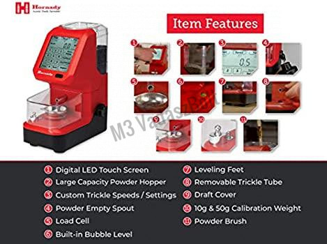 A Hornady® Auto Charge Pro digitális mérleg a legjobb választás arra, hogy Ön könnyen, gyorsan és pontosan mérhesse ki lőportölteteit. A 0,1 gr pontosságú Auto Charge Pro digitális mérleg több állítható adagolási sebességeket kínál különféle lőportípusokhoz.