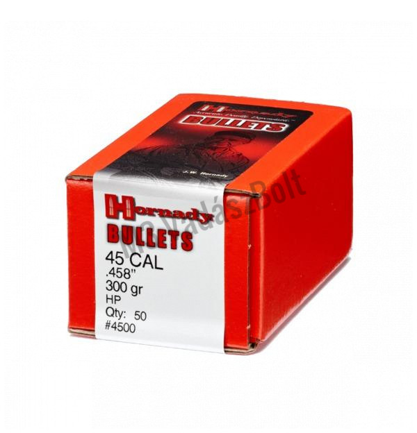 Lövedék .45 (.458) HP 300gr - A gyártó tradicionális ólomhegyű lövedéke. Kialakítása és anyagminősége egyenletes gombásodást és erős becsapódási energiát tesz lehetővé. A Hornady InterLock technológiának köszönhetően a lövedék köpenye és magja tökéletesen egymáshoz záródnak egymáshoz, így közvetítve tökéletesen minden energiát a becsapódás és a gombásodás során.