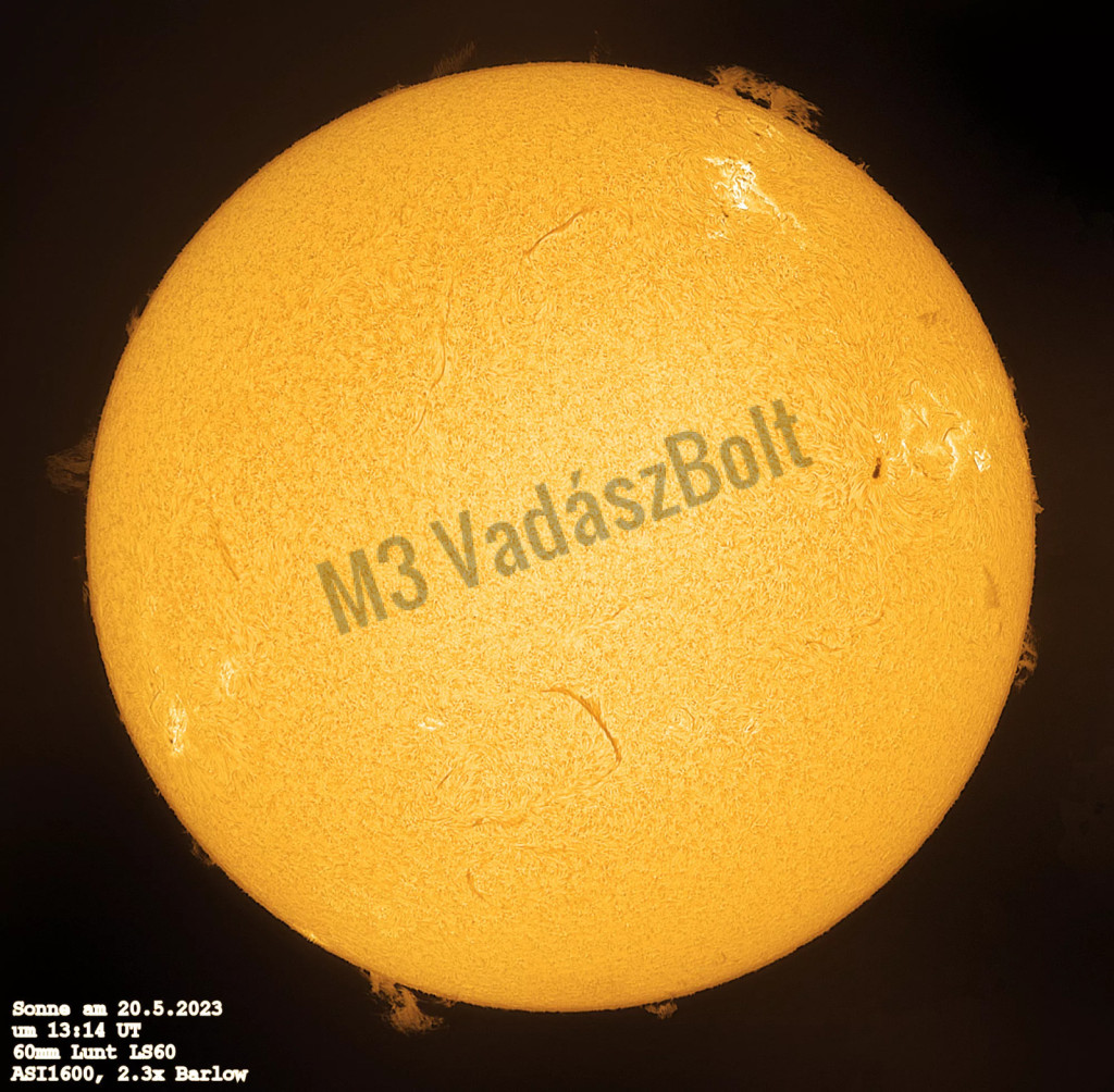 A beépített B1200 H-alfa blokkszűrő és a precíz Etalon rendszer lehetővé teszi a Nap finom részleteinek megfigyelését – láthatóvá válnak a napfoltok, protuberanciák, filamentumok és a kromoszféra dinamikus mozgásai.