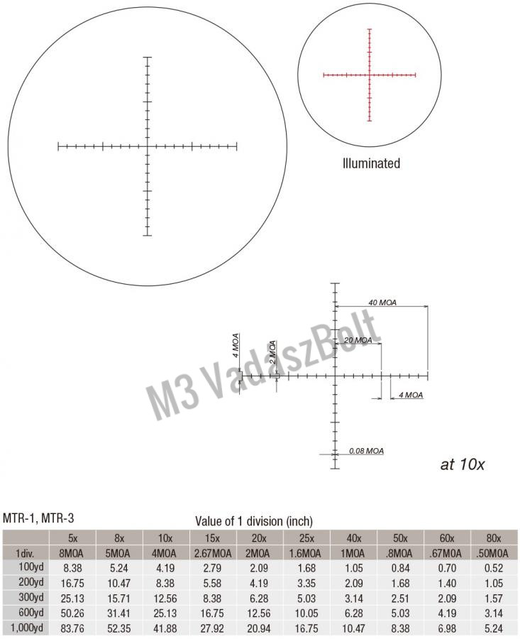 - Szálkereszt: MR-1 (MOA alapú, világítással)