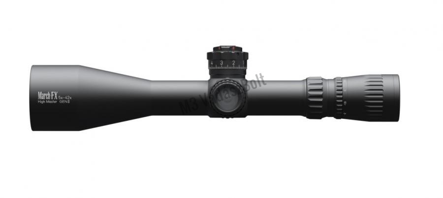 A March-FX 5-42x56mm Gen2 FML-TR1 egy csúcskategóriás, első fókuszsíkú (FFP) céltávcső, amelyet a japán DEON Optical Design Corporation fejlesztett ki kifejezetten precíziós lövészethez, PRS/NRL versenyekhez és extrém távolságú célzáshoz. A "High Master" optikai rendszer és a 8.4x zoomtartomány révén kivételes képminőséget és rugalmasságot kínál. Az FML-TR1 egy versenyorientált, „karácsonyfa” stílusú szálkereszt, amely 0.2 MIL-es beosztásokkal segíti a precíz célzást és távolságbecslést. A középpont és a kereszt világítással ellátott, így rossz fényviszonyok mellett is jól látható. A szálkereszt kialakítása minimalizálja a célkép eltakarását, támogatva a gyors és pontos célzást. A mechanikai kivitel szempontjából a távcső egy darabból megmunkált alumíniumtesttel készül, belseje argongázzal van feltöltve a páramentesség és stabilitás érdekében. A tornyok Shuriken záras kivitelűek, zéró-beállítási lehetőséggel. A szálkereszt piros fényű, több fokozatban állítható világítással rendelkezik.
