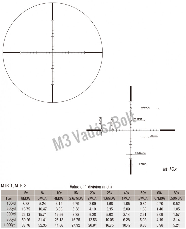 - Szálkereszt: MTR-3 (MOA alapú, világítással)
