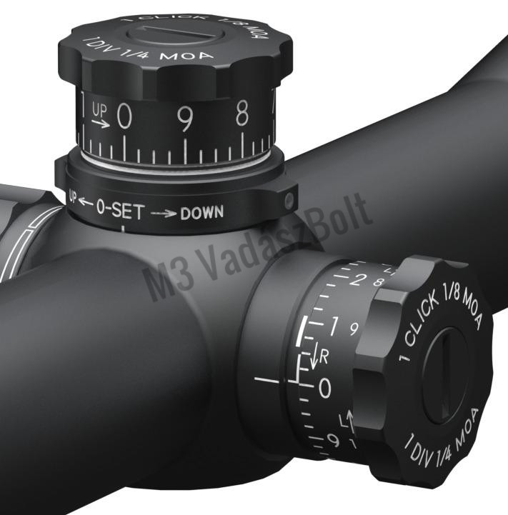 - Állítási tartomány: 60 MOA (magasság), 40 MOA (szélirány)