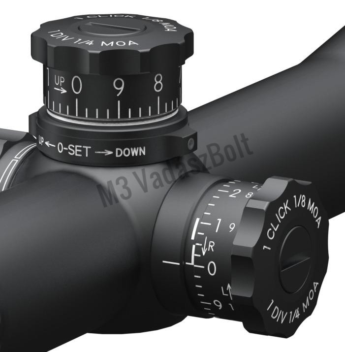 - Állítási tartomány: 60 MOA (magasság), 40 MOA (szélirány)