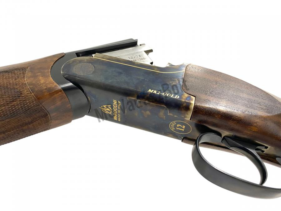 A Marocchi First MK2 Gold Black egy igazi ékszer a vadászat szerelmeseinek! 12-es kaliberben, ejektorral, 76 cm-es (30”) csőhosszal és cserélhető choke készlettel, ami páratlan sokoldalúságot kínál. A könnyű és kiegyensúlyozott súlyának köszönhetően a puskával célzás igazán gyors és egyszerű. Emellett a puska antikolt polírozott, feketére festett acéltokrésze és a rajta végig futó arany vonal egy igazán elegáns megjelenést biztosít.