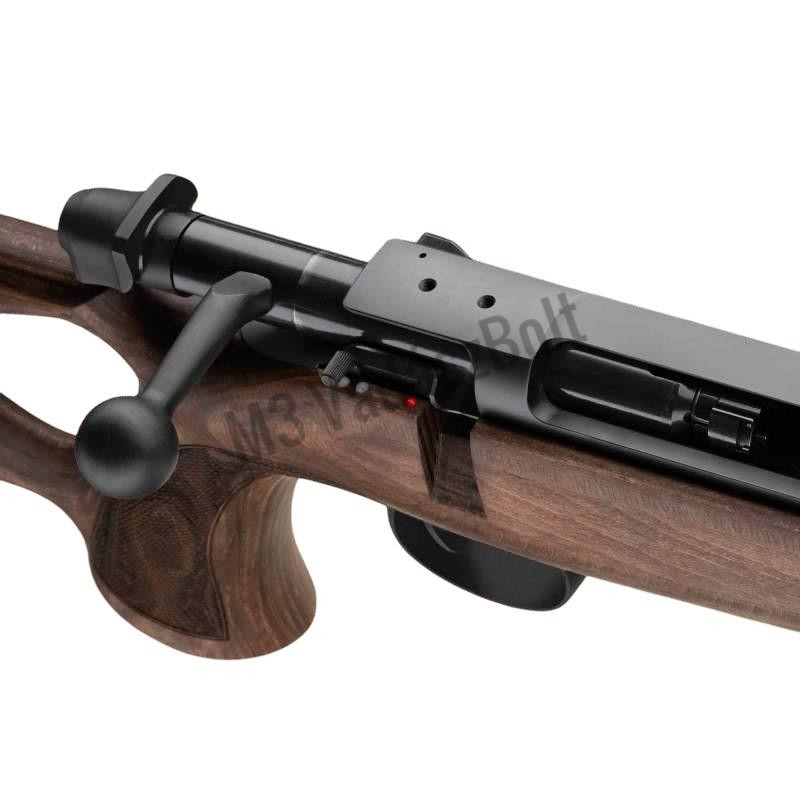 Maximális ergonómia kedvező áron: A masszív, laminált faanyag nagy hüvelykujj-nyílással és mindkét oldalon domborított markolattal biztosítja a stabil és kényelmes fogást. A laminált fa alapanyagnak köszönhetően a MAUSER 18 Pure Max rendkívül strapabíró, ellenálló minden időjárási körülménnyel szemben, és garantáltan nem vetemedik, reped vagy duzzad meg. Úgy tervezték, hogy megbízhatóan helytálljon bármilyen hőmérsékleten és környezetben. Könnyen tisztítható és esztétikailag is megnyerő – mi mást kívánhatna egy vadászpuska?