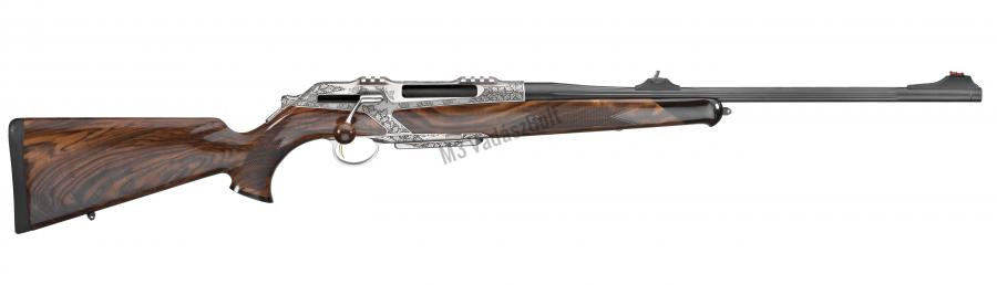 A Merkel Helix újraalkotta az egyenes húzású rendszert - biztonság, gyors kezelhetőség és pontosság. Az egyedülálló Helix zárszerkezet nagyon biztonságos, a zárdugattyú hátrafelé nem mozdul ki a zárt tokrészből, de a forgó zárfejnek köszönhetően a 6 karmos zárolás 100%-os biztonságot nyújt. A 1:2 áttétellel a húzáshossz a felére csökkent. Az egy mozdulattal, szerszám nélkül cserélhető, hidegen kovácsolt csőnek köszönhetően multifunkciós vadászfegyverként használható.