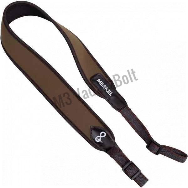 Merkel Niggeloh fegyverszíj, oliv zöld, neoprén - A széles és puha neoprén pánt roppant kényelmes, az anyag nyúlása korlátozott, de az esetleges rázkódást megfelelően tompítja. A belső oldalán a csúszásmentes felület stabilan a vállon tartja a fegyvert. A különösen széles pánt akár a puskát védő alátétként is szolgál és az anyag mozgása teljesen hangtalan. Méretben illeszkedik minden 20 mm-nél nagyobb szíjkengyelhez.