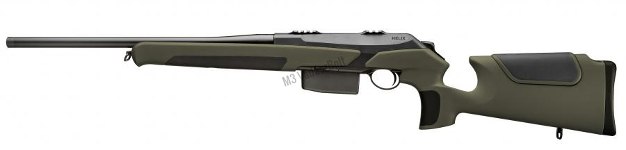 A Merkel Helix új értelmet adott a Speedster thumbhole tussal, mellyel ismélésnél nem kell "kibújnunk" a lyukból, elég felfelé mozdítanunk kezünk, az egyenes húzású rendszernek - mely biztonságos, gyors kezelhetőségű és pontos. Az egyedülálló Helix zárszerkezet nagyon biztonságos, a zárdugattyú hátrafelé nem mozdul ki a zárt tokrészből, de a forgó zárfejnek köszönhetően a 6 karmos zárolás 100%-os biztonságot nyújt. A 1:2 áttétellel a húzáshossz a felére csökkent. Az egy mozdulattal, szerszám nélkül cserélhető, hidegen kovácsolt csőnek köszönhetően multifunkciós vadászfegyverként használható. A cső ilaflon bevonatot kapott.