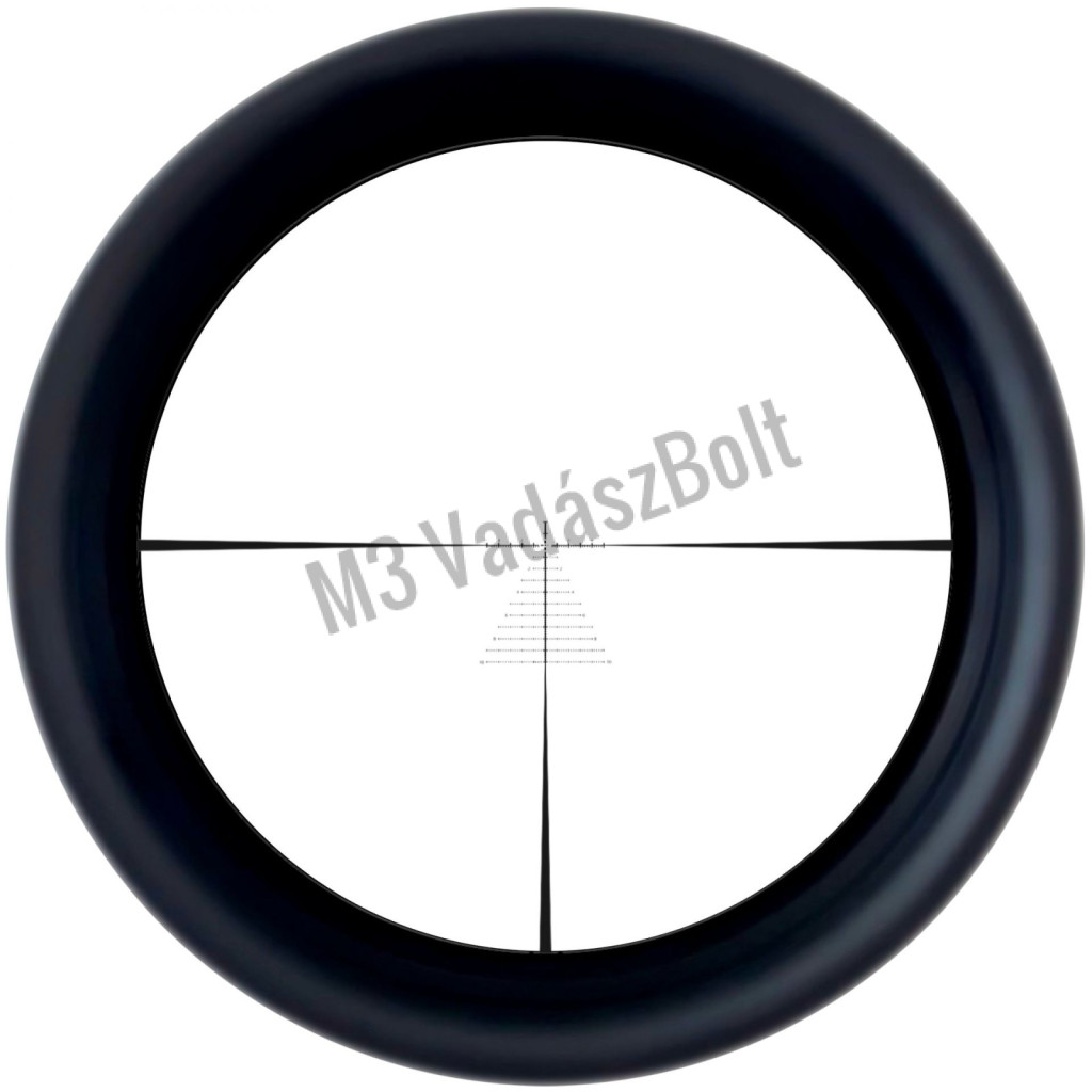 Az első fókuszsíkban (FFP) elhelyezett szálkereszt lehetővé teszi a pontos távolságbecslést és a megbízható fölétartás korrekciókat. Mivel a szálkereszt a nagyítással együtt változik, minden mérési jelölés és referenciaarány pontos marad, így bármilyen távolságon precíz korrekciók végezhetők.