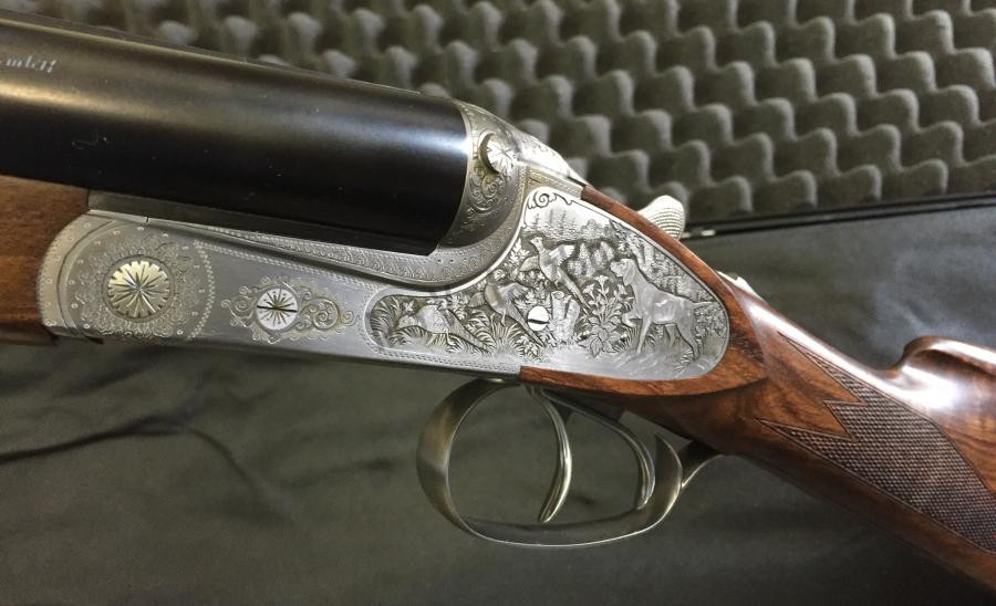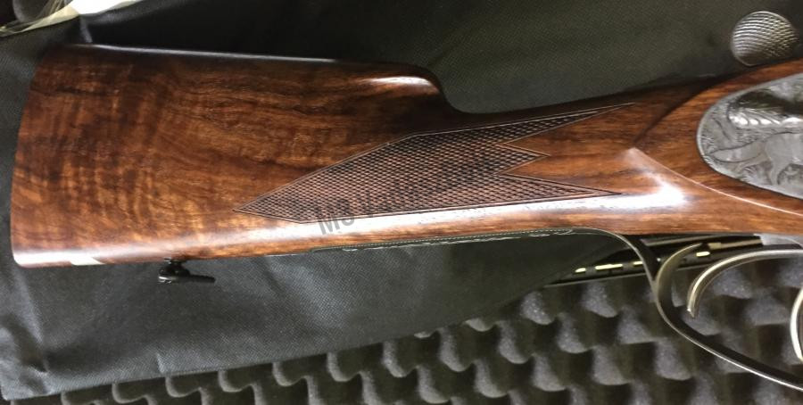 A levehető oldallakatok roppant elegánssá teszik a 65E sörétes vadászfegyvert. Ez a sörétespuska maga az élő angol stílus: Az acél baszkül nitridált és visszafogott szürke, akárcsak a sátorvas, zárókar és biztonsági retesz. A puskatus angol agyazású, kézzel faragott, és kezelt felülettel. Elegáns kinézetét a kiválasztott fa is növeli. A gyönyörű sörétespuska alapfelszereltségének részeit képezik a levehető oldallakatok és a monogram lemez, melyet saját nevének kezdőbetűivel láthat el – Igazi britt szépség. A modellt Jagd véset díszíti, és elsütőszerkezetét két elsütőbillentyűvel látták el.