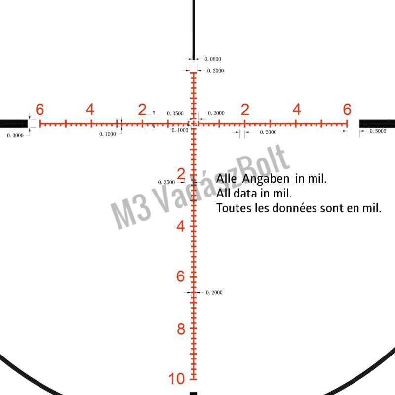 • Állítás (magasság/oldal, 100 m-en): 1/10 mils (1 cm)