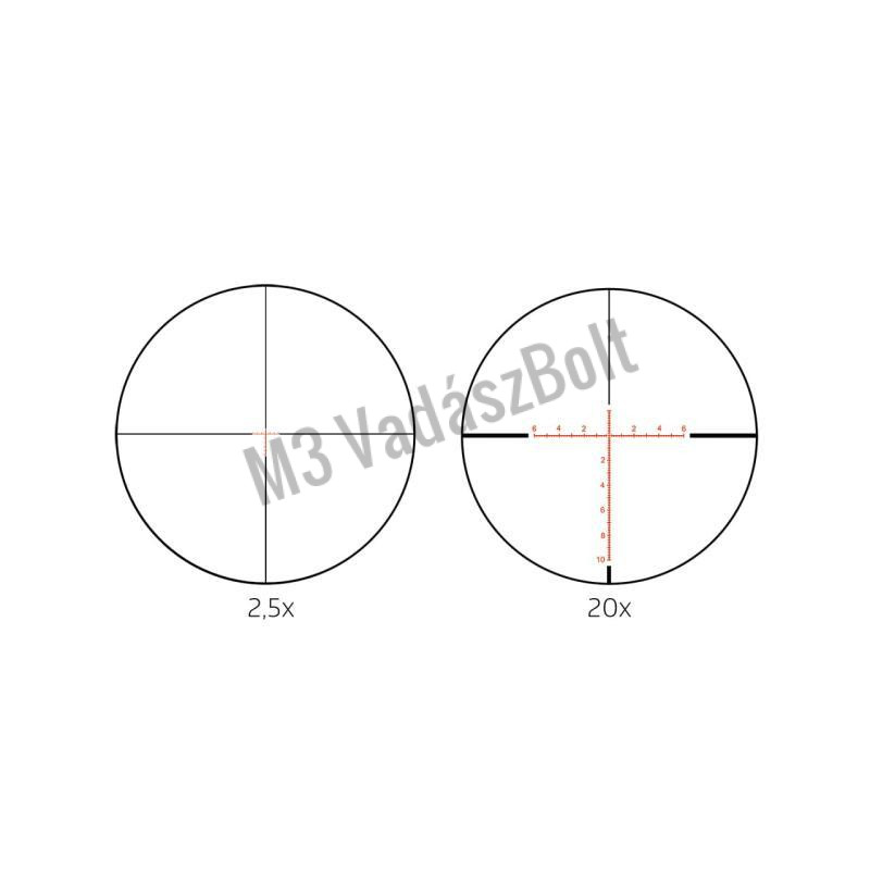 • Látómező 2,5-20x (100 m-en): 14 - 2,2 m