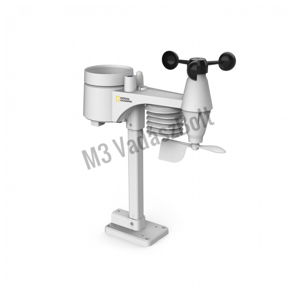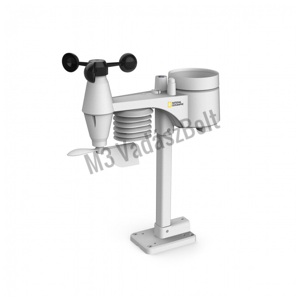 A NATIONAL GEOGRAPHIC WIFI színes Weather Center meteorológiai állomás 7 az 1-ben professzionális kültéri érzékelővel átfogó információs szolgáltatást kínál. A multifunkcionális kültéri érzékelő egyszerűen felszerelhető a mellékelt szerelési tartozékokkal! A szenzor megbízhatóan továbbítja a mért szélsebesség, szélirány, páratartalom, hőmérséklet, csapadékmennyiség, valamint UV-szint és fényintenzitás értékekeit a bázisállomásra 868 MHz-es frekvencián. A konzol 5,7"-es színes kijelzője a mért helyi adatok, valamint az állomások történelmileg mért értékeinek széles választékát mutatja.