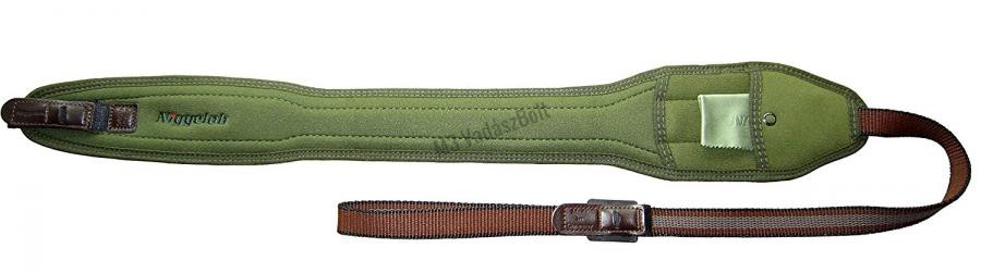 Niggeloh fegyverszíj, oliv zöld neoprén, zsebes, lencsetisztító kendővel