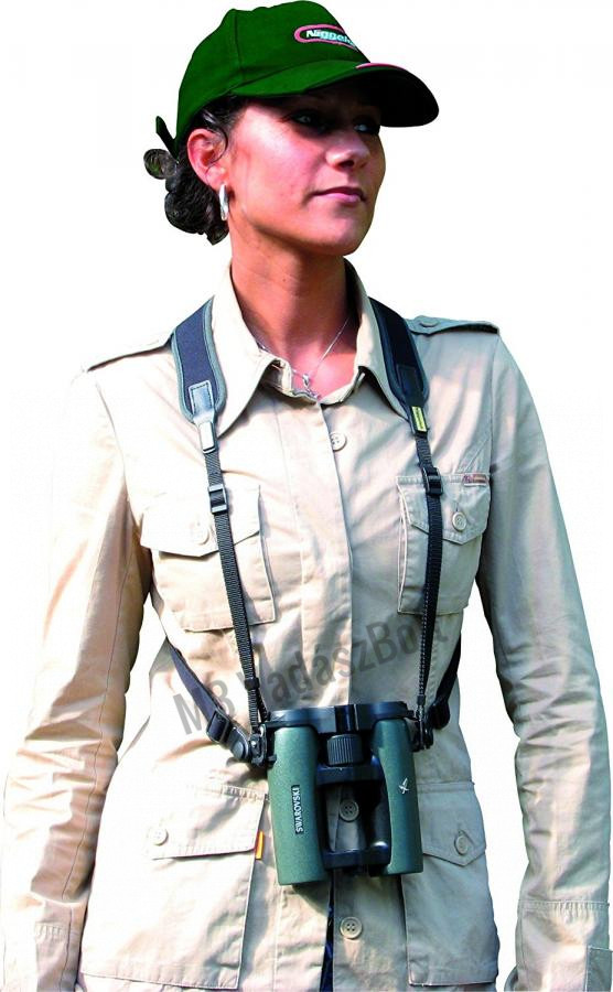 Niggeloh sport keresőtávcső heveder - Aktív mozgás közben roppant zavaró, ha a nyakunkba akasztott optika rázkódik és leng. Ezt a problémát küszöböli ki ez a kiváló minőségű sport heveder! Ahogy azt a Niggelohtól megszokhattuk, kiváló minőségű, kényelmes és strapabíró anyagokból készült. Egy mozdulattal a szemére illesztheti, és elengedve visszakerül eredeti, biztonságos helyére. Hossza természetesen állítható. A derekat körbeölelő stabilizáló pánt könnyedén lecsatolható, amennyiben a helyzet úgy kívánja. Ilyen esetben egyszerű de kényelmes neoprén nyakpántként funkcionál. Súlya mindössze 150 g.