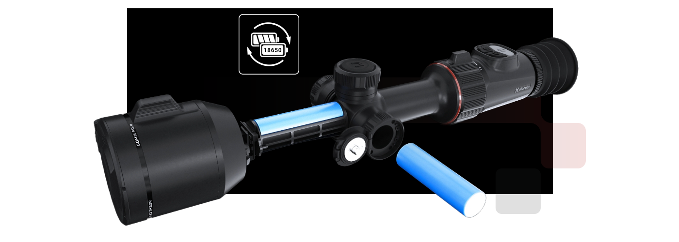 Az ACE kettős akkumulátor rendszert alkalmaz, egy 4000mAh beépített akkumulátorral és egy további cserélhető 18650-es akkumulátorral. Ez a felépítés kielégíti a hosszabbra nyúló szabadtéri vadászatok igényeit is.