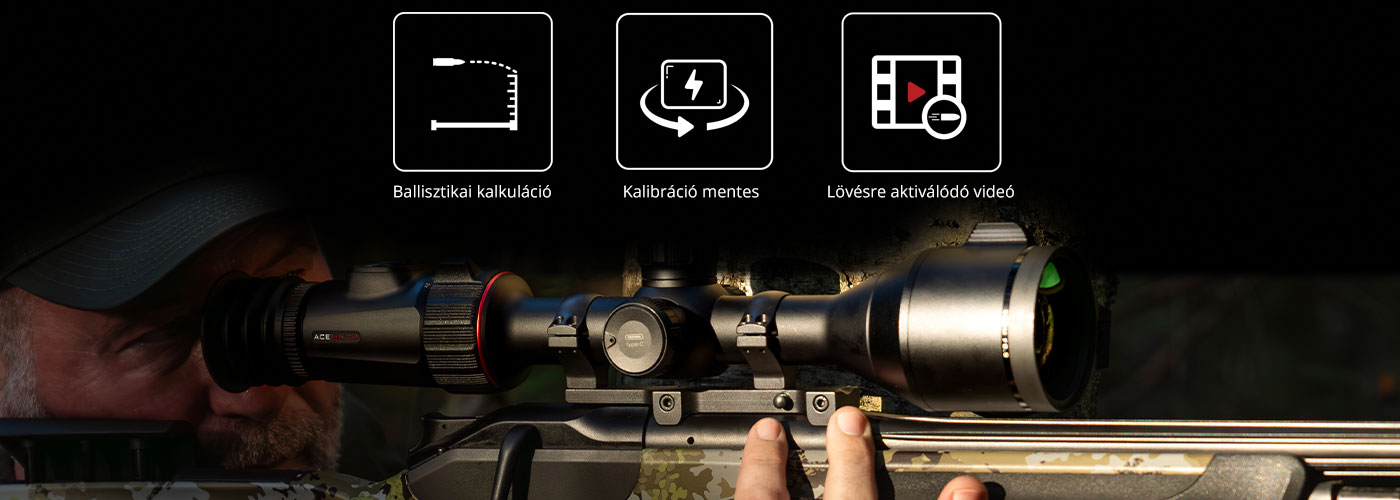 Az ACE olyan alapvető funkciókat tartalmaz a különböző vadászati forgatókönyvekhez, mint a menüből elérhető ballisztikai számítások, az automatikus képernyőleállítás, a visszarúgás által aktivált videofelvétel és a zármentes (akadásmentes) kalibráció, így a tökéletes vadászat végre elérhetővé vált.