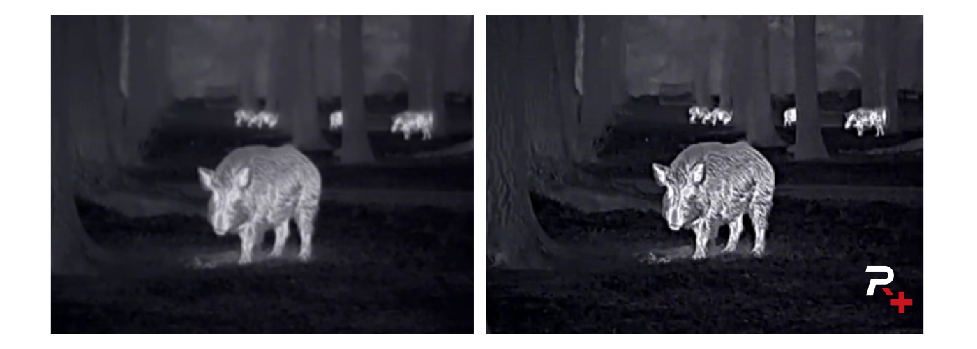 És itt a céltávcső sorozat igazán nagy durranása! Az új Vision+ átfogó rendszere 1,03 hüvelykes, kerek, 2560×2560-as AMOLED képernyővel és az iparágban egyedülálló okuláris zoommal rendelkezik a közvetlen nagyításhoz. A hagyományos e-zoomtól eltérően ez a kifinomult rendszer megakadályozza az alap nagyításhoz képesti elmosódást és a torzulást a közeli nézeteknél. A 60-as esetében ez azt jelenti, hogy 3x nagyítás érhető el az óriási szenzor képébe klasszikusan, tárcsával belenagyítva, csak utána kezdődik a digitális nagyítás a tornyon. A hőkép felbontása érezhetően sokkal később pixelesedik, a legtöbb szituációban tökéletesen éles és kontúros marad! Ez eddig egy készülékben sem volt elérhető. Élvezd a nagy felbontású képeket és a szélesebb látómezőt a magával ragadó és kényelmes megfigyelési élmény érdekében.