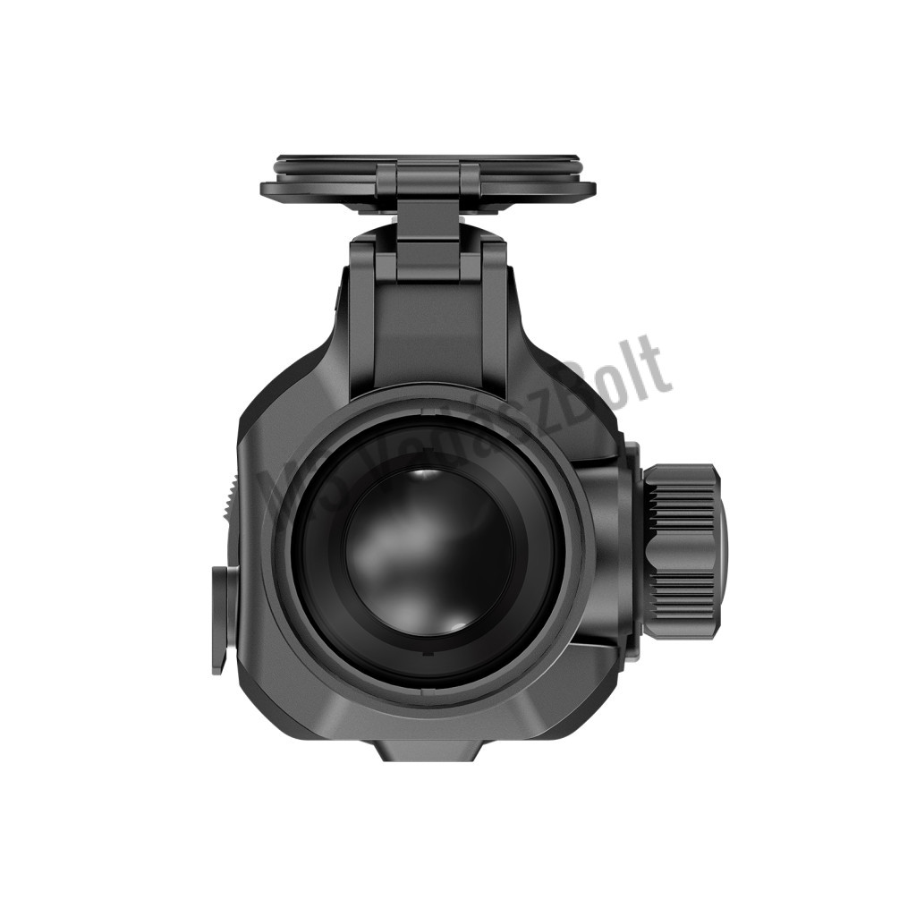 384×288-as felbontású érzékelővel, 12 μm pixelmérettel és NETD ≤ 15 mK értékkel a MATE LITE 38 mm-es fókusztávolságával jól paraméterezett, átgondolt optikai tervezésű előtét, mely 1 - 8x nappali céltávcső nagyításig megbízható hőképet biztosít a legtöbb vadászati helyzetben.