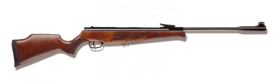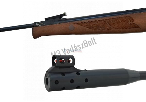 Norica Storm légpuska 5,5mm - Fiber szálas fém irányzékok, állítható elsütőszerkezet, ventillált tusgumi, könnyűfém kompenzátor, távcső előkészítés, pofadékos fa tus halbőrözéssel.