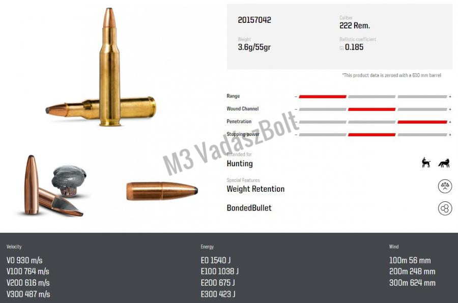 Lövedék tömege: 55 gr/ 3,6 g