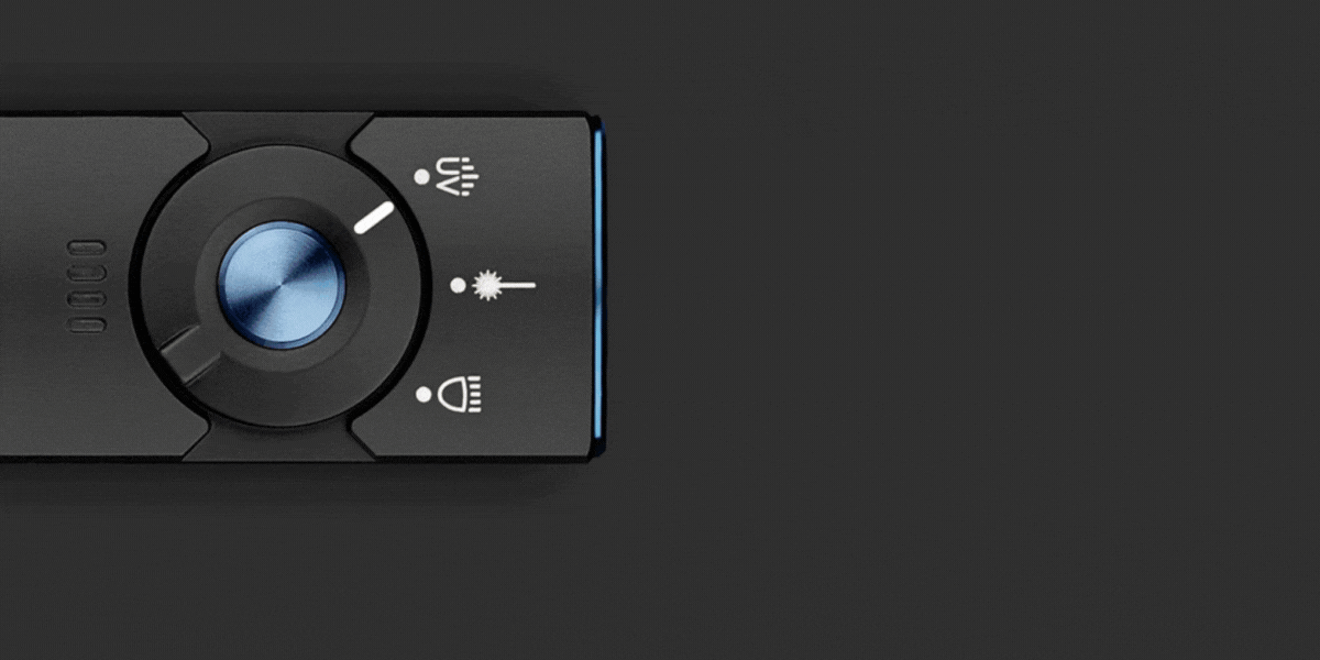 Az intuitív gombrendszerrel könnyedén válthatunk a LED-, az UV fény és a zöld pointer között.