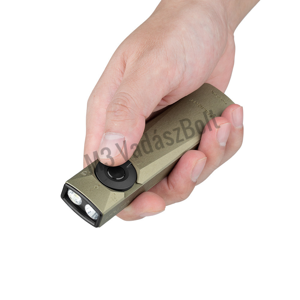 Az Olight Arkfeld Ultra 3-az-1-ben a fehér fény (1400lm), az UV fény (900mW) és a zöld lézer (1 osztály) kombinálásával egy igazi multifunkcionális zseblámpa, egy kezes társ a mindennapokra. Emellett kicsi, könnyű és ahogy az Olight lámpáktól már megszokhattuk, méretét meghazudtoló fényerővel bír.