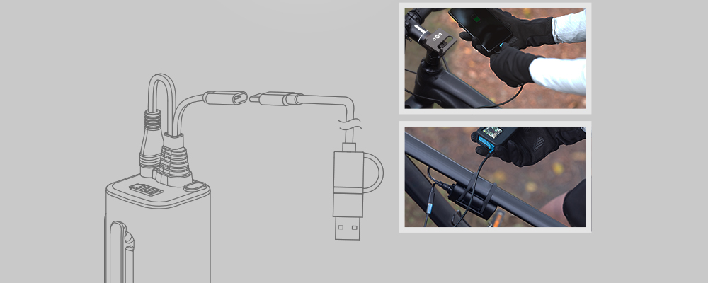 Az akkumulátorcsomag USB-C portja támogatja a 18 W-os gyorstöltést. Használható tápegységként más eszközökhöz, például GoPro akciókamerához, mobiltelefonokhoz, hátsó lámpákhoz, stopperórákhoz stb.