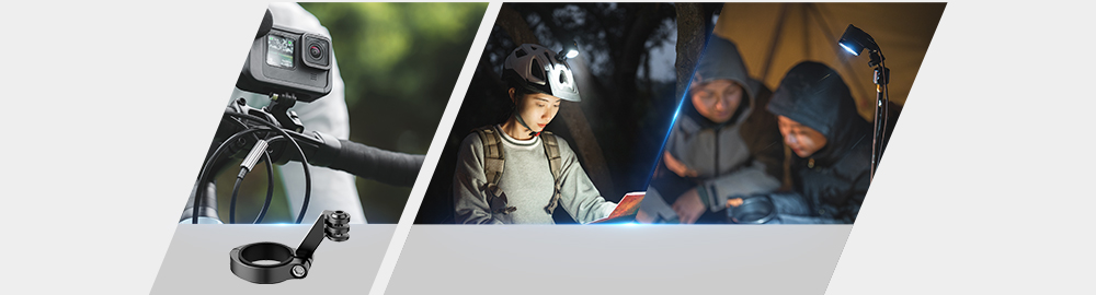 A lámpafej kompatibilis a GoPro rögzítőkkel, így könnyen felszerelhető például kormányra, sisakra, állványra stb.