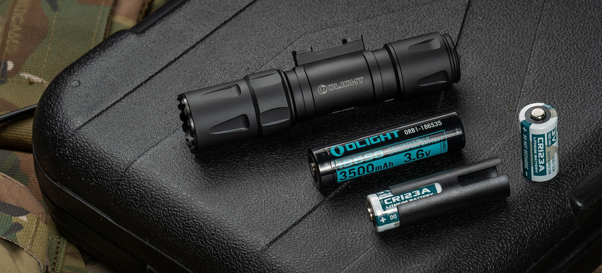 A lámpát egy darab 3500 mAh 18650 (tartozék) vagy két darab CR123A (átalakító tartozék) akku hajtja meg akár 5 órán keresztül.