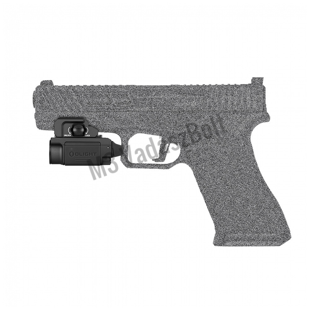 Észre sem lehet venni, ha ez a kisméretű lámpa fent van a fegyveren és könnyedén elfér a fegyvertokban is. Bármilyen Picatinny (MIL-STD-1913) és Glock sínnel ellátott pisztolyra, vagy fegyverre rögzíthető. A gyorsoldású rozsdamentes acélból készült szereléknek köszönhetően könnyedén le- és felszerelhető, pozíciója állítható. A dupla kapcsológomb kialakítása elősegíti a kényelmes jobb- és balkezes fegyverhasználatot is. Rövid lenyomásra statikus fénnyel világít, nyomva tartva csak a szükséges ideig fog működni.