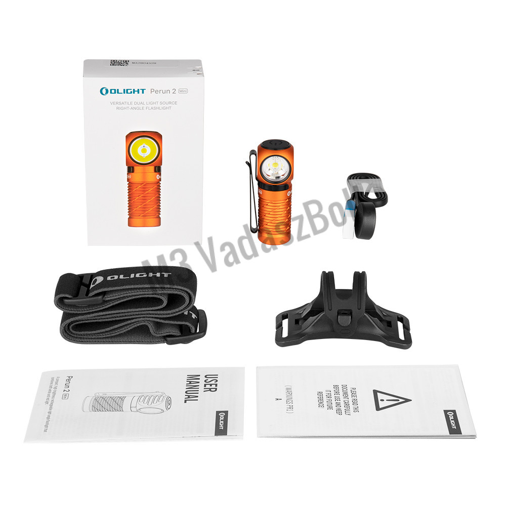 Tartozékok:Perun 2 Mini lámpa; 650 mAh 3.7 V IMR16340 lítium akku; MCC1A mágneses, USB-s töltőplatform; rozsdamentes övcsíptető; rögzítő talp; fejpánt.