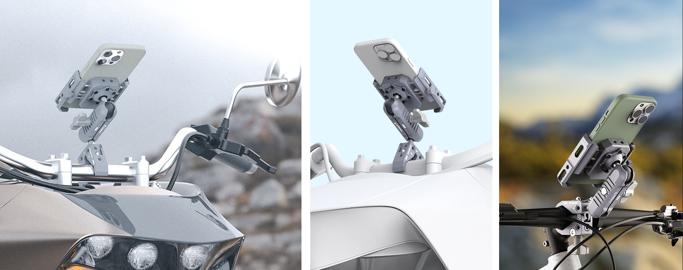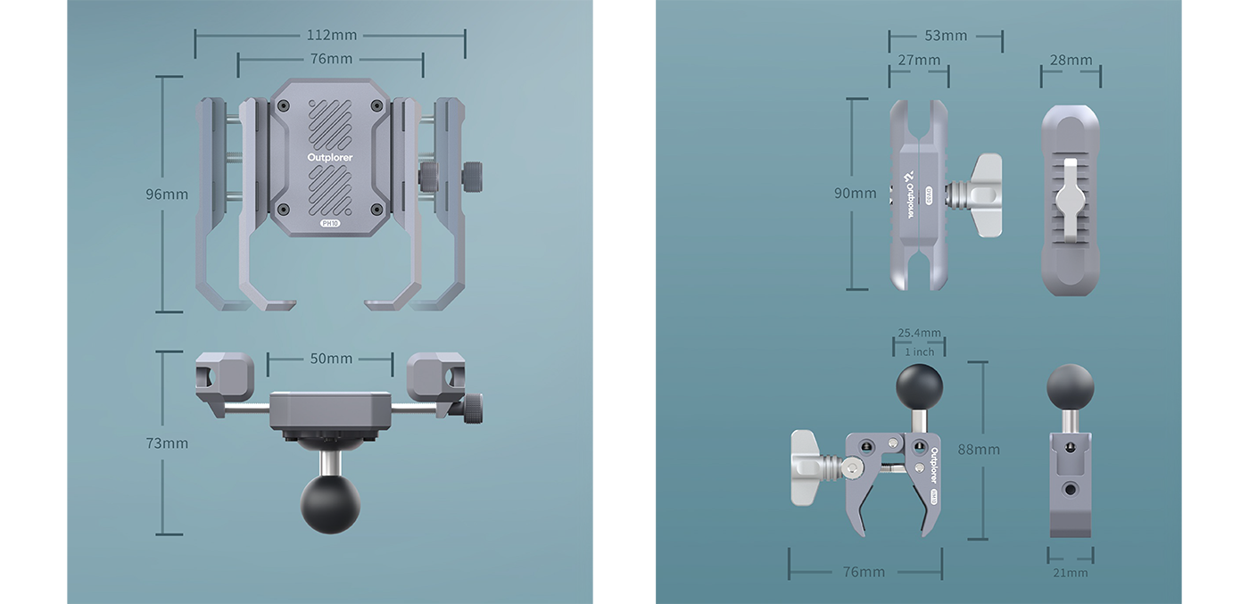 Az Outplorer telefontartó több védőbetéttel rendelkezik. Mind a telefonrögzítő, mind a kormányrögzítő több, szabványos 1/4 hüvelykes csavarfurattal és gyorscsatlakozóval rendelkezik, így könnyedén bővíthető egyéb tartozékokkal.