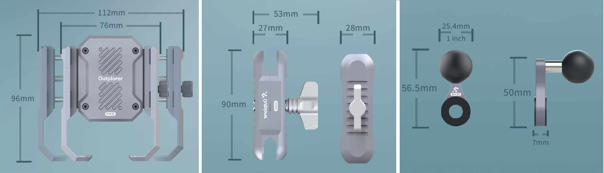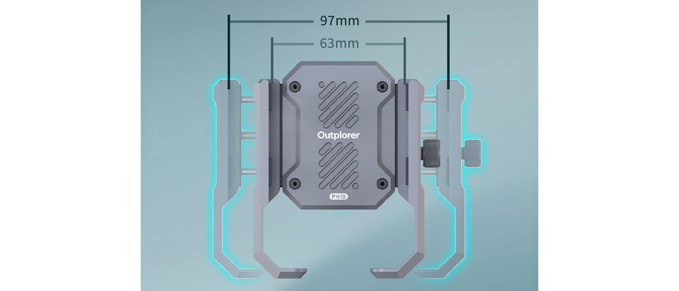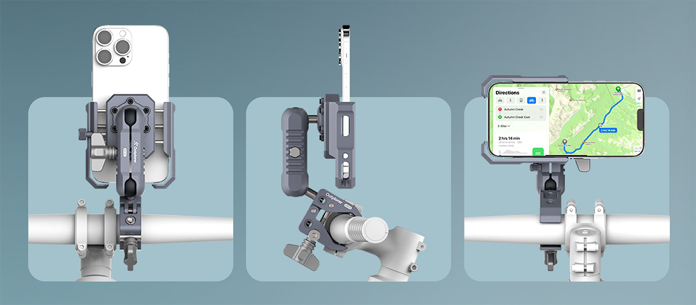 Az Outplorer telefontartó több védőbetéttel rendelkezik. Mind a telefonrögzítő, mind a kormányrögzítő több szabványos 1/4 hüvelykes csavarfurattal és gyorscsatlakozóval rendelkezik, így könnyedén bővíthető egyéb tartozékokkal.