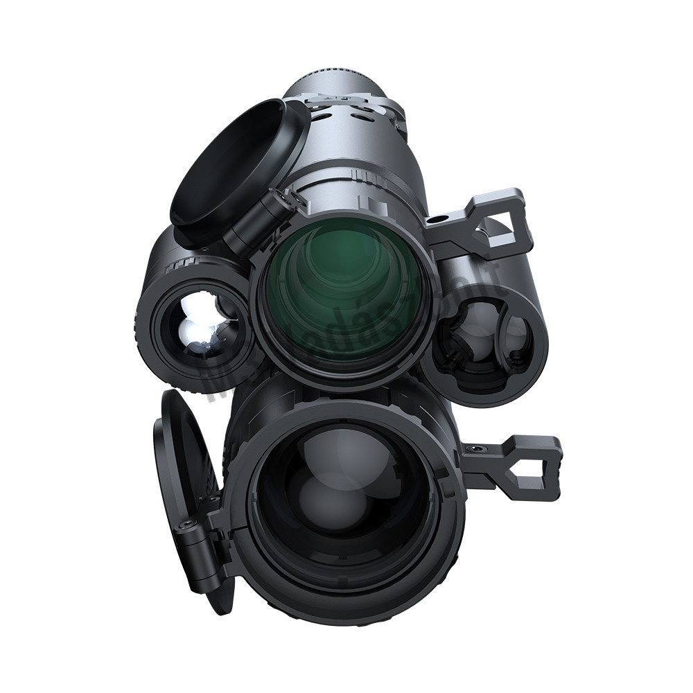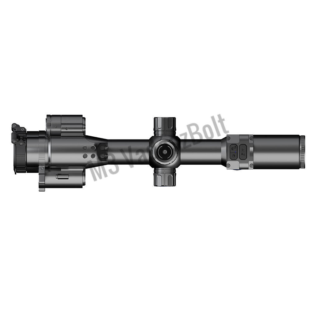A 384x288 felbontású infra hőérzékelővel, 35 mm-es objektívvel (amely 7,5 fok x 5,6 fokos FOV-ot biztosít), 2,4x optikai nagyítással, 2x digitális nagyítással, 12µm pixelmérettel és NETD≤25mK-el rendelkező készülék gazdag kontraszttal és kiemelkedő felbontással büszkélkedhet, amikor a szálkeresztet az 1200 yardos beépített lézeres távolságmérővel a célpontra irányítjuk. A begyűjtött információk innen kerülnek be a fedélzeti ballisztikai számításokat végző szoftverbe.
