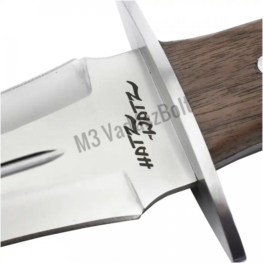 Robusztus full-tang felépítésének köszönhetően a Hatz-Watz Boar Hunter Walnut vaddisznóölő tőr alkalmas nagyvadak fogására, valamint a legkeményebb munkákra az erdőben és a mezőn. A 3,8 mm vastag penge mindkét oldalán csiszolt. A tőr pengéje 440A rozsdamentes acélból készült, keménysége 57-58 HRC. A penge mindkét oldalán enyhén gömbölyű a jobb vágás érdekében. A markolat diófából készült mely kényelmesen fekszik a kézben, és egy zsinórlyukkal van ellátva. A tőrhöz egy kettős hevederes biztonsági berendezéssel rendelkező bőrhüvely tartozik.