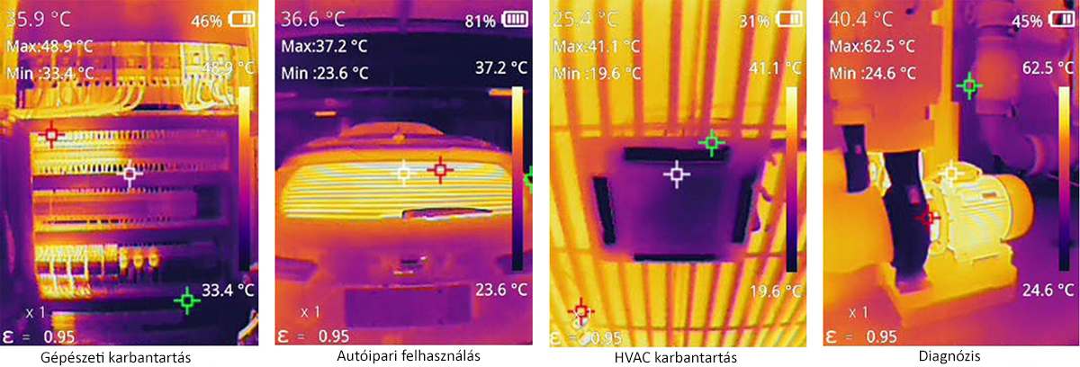 Képmódok: hőkép, kettős spektrumú fúzió , élőkép, kép a képben.